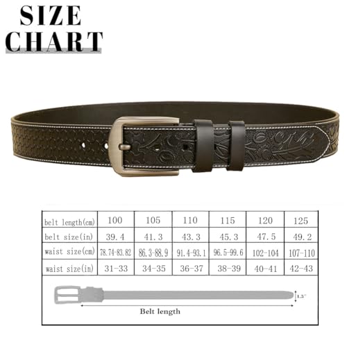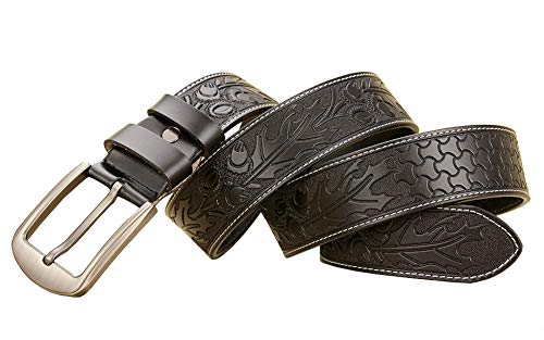 Cintura di jeans da uomo in pelle nera con stampa in scala, di Western Leaves Nero 105 cm