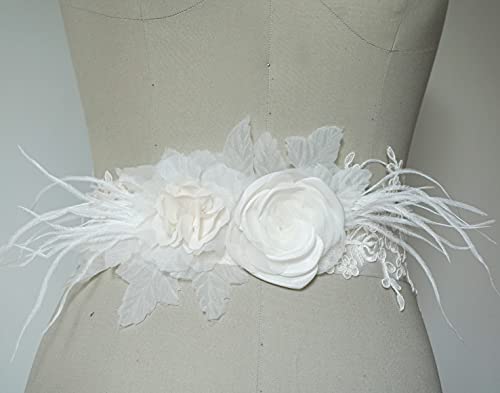 Cintura matrimonio con spilla Fiore, lunghezza 220 cm., Beige e Avorio, L