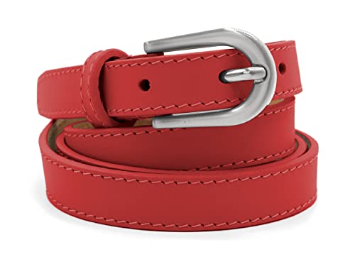Van Der Rich ® - Cintura in Pelle Fine 2 cm di Lunghezza Regolabile (Made in Italy) - Donna (Rosso, 95cm)
