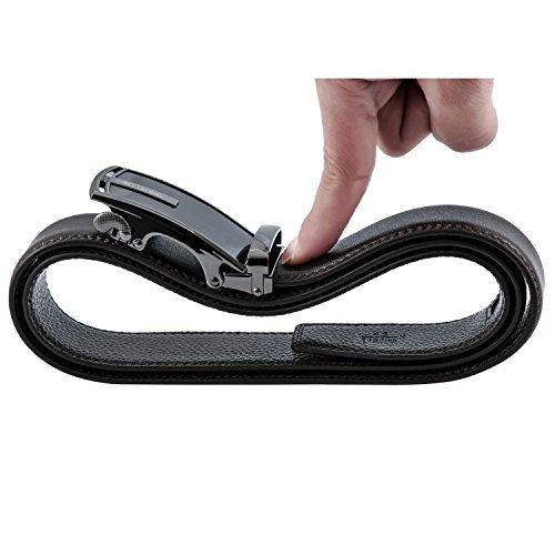 Cintura in Pelle Per Gli Uomini - Fibbia Automatica Cricchetto Scivolo Holeless - Lunga 130 Centimetri Confezione Regalo