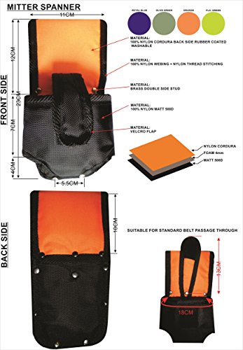 Cintura porta attrezzi utilizzabile su ponteggi. Con comoda imbottitura in vita - cintura porta attrezzi 8 in 1 - borsello a tre scomparti + borsello a due scomparti, scomparto extra large per metro, 4 tasche / scomparti, cintura porta attrezzi per impalcature - in nylon imbottito, colore arancione - 5 pezzi, leggera.