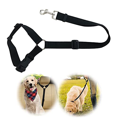 2 in 1 Cintura di Sicurezza per Cani Cintura Sicurezza Cani Auto in Nylon Cinture Sicurezza per Cani Regolabile con Moschettone Guinzaglio Cane Auto Cintura per Cani di Piccola Taglia, Media e Grande