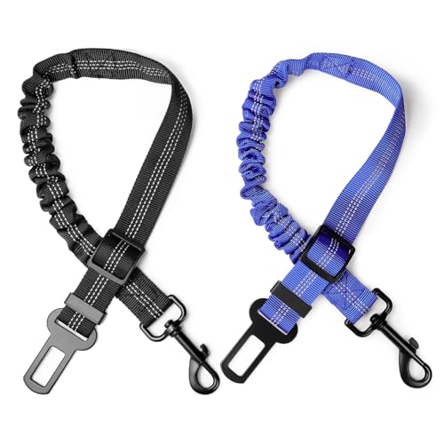 Cintura Sicurezza Cani, 2 Pezzi Cintura di Sicurezza Regolabile Guinzaglio per Cani Auto con Assorbimento degli Urti Elastico e Riflettente Fili per Tutte Cani e Gatti (Nero&Blu)