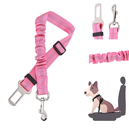 Cintura di Sicurezza per Cani, Regolabile in Nylon Riflettente Cane Gatto Cintura per Seggiolino con Elastic. (Rosa)