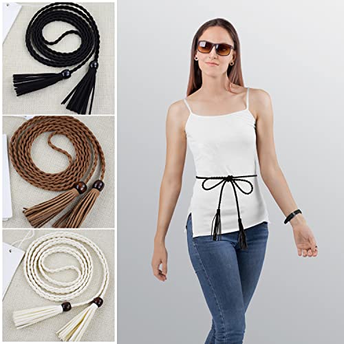 【Materiale durevole】 La cintura intrecciata con nappe è realizzata in materiale in microfibra, resistente all'usura, morbido, resistente alle rughe, non facile da sbiadire e con bordi delicati, rifinito con perline di legno e nappa. La spille di perle bianche è realizzata in materiale plastico, utilizzando una nuova tecnologia di lega di zinco e tecnologia a goccia di colla, il doppio ago sul retro è fissato più saldamente e le perle su entrambi i lati possono essere rimosse.