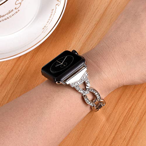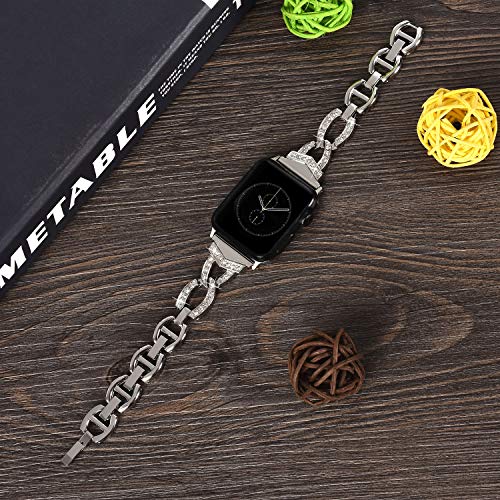 Cinturino compatibile con Apple Watch 40 mm in acciaio inox per iWatch Series 4 3 2 1, bracciale da donna con diamanti per Apple Watch 38 mm, argento