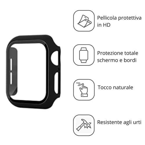 ✔️ Cover apple watch: Cover con pellicola protettiva in HD, resistente agli urti su schermo e bordi, comodo e veloce d'applicare, Taglio preciso garantisce una vestibilità perfetta, facile accesso a tutti controlli, pulsanti, sensors