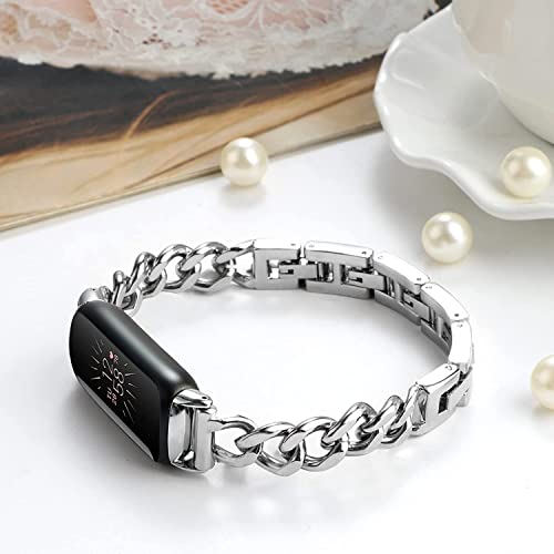 Cinturino compatibile con Fitbit Luxe Bands, Cinturini regolabili in acciaio inossidabile per Fitbit Luxe Smart Watch per le Donne Uomini-argento
