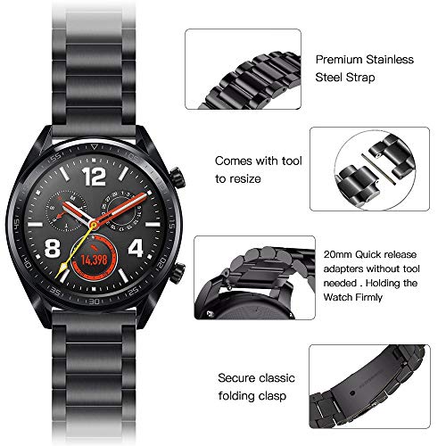 Cinturino Compatibile con Galaxy Watch 3 41mm/Watch 42mm/Watch Active 2/Galaxy Watch 4 (Classic)/Huawei Watch GT 2 42mm, 20mm Cinturino in Acciaio Inossidabile Cinturini di Ricambio in Metallo,Nero