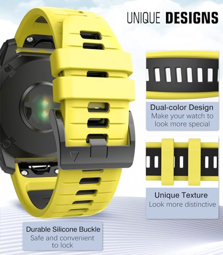 MoKo Cinturino Compatibile con Garmin Fenix 7/7 Pro/6/6 Pro/5/5 Plus/Instinct/Instinct 2/Forerunner 965/955, Quick Fit 22mm Cinturino di Ricambio in Silicone Morbido Bicolore, Giallo/Nero