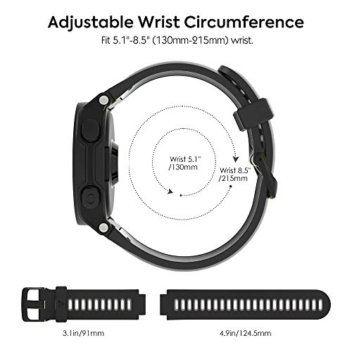 MoKo Cinturino Compatibile con Garmin Forerunner 735XT/220/230/235/620/630, Morbido Braccialetto di Ricambio in Silicone - Nero e Grigio