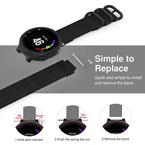 MoKo Cinturino Compatibile con Garmin Forerunner 235 Lite/220/230/620/630/735XT/Approach S5/S6, Cinturino Morbido in Nylon per Smartwatch, Cinturino Regolabile di Ricambio con Fibbia Classica, Nero