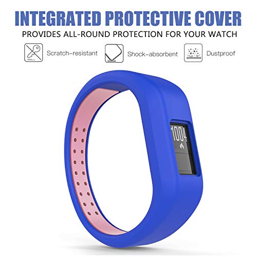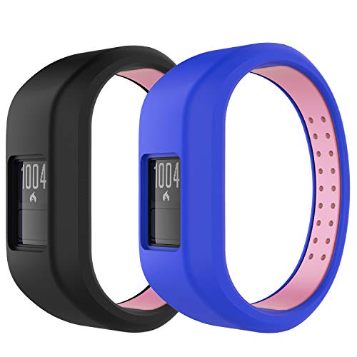 MoKo Cinturino Compatibile con Garmin Vivofit JR/Vivofit JR 2/Vivofit 3, 2 PACCHI Braccialetto di Ricambio Sportivo in Silicone Morbido, Taglia larga - Nero/Rosa + Blu/Rosa