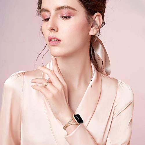 PUGO TOP Cinturino Compatible for Apple Watch Series 5 4 3 2 1,Cinturino Intercambiabile Regolabile in Metallo con Strass per iWatch (38mm/40mm, Series 3&4 Oro)