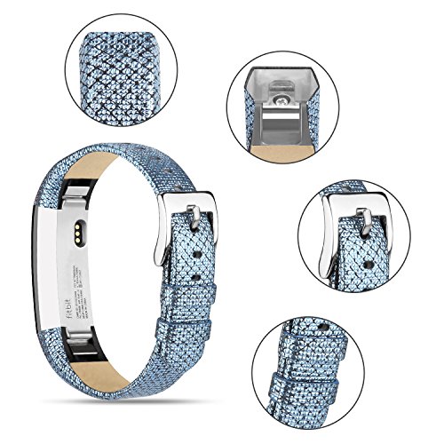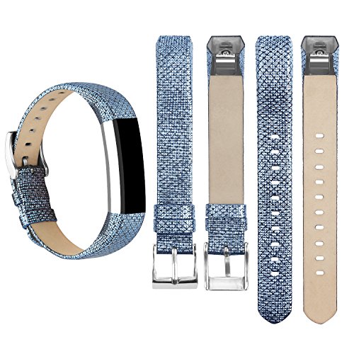 Cinturino in Cuoio Vancle per Fitbit Alta, Fasce di Sostituzione Fitbit Alta comoda e regolabile, Fasce di Sostituzione con Fibbia in Acciao Inox (Senza Alcun Inseguitore) (Griglia Blu)