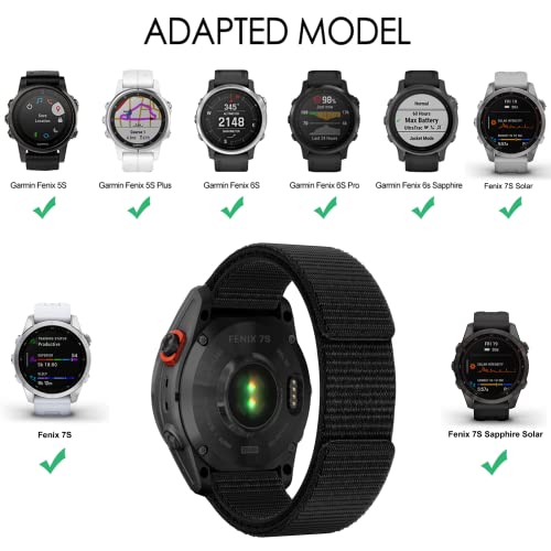 ▲ Modelli compatibili:Cinturino in nylon da 20 mm per Garmin Fenix 7S / Fenix 7S Solar / Fenix 7S Sapphire Solar / Fenix 6S / Fenix 6S Pro / Fenix 6S Pro Solar / Fenix 6S Sapphire / Fenix 5S / Fenix 5S Plus / Fenix 5S Sapphire / D2 Delta S / Descent MK 2S / Instinct 2S/(NON PER FENIX 7X/6X/5X/FENIX7/6/5!!!) Controlla se il tuo cinturino originale è contrassegnato " 20", se sì, il cinturino si adatta al tuo orologio Garmin. SOLO cinturino, NON include orologio intelligente.