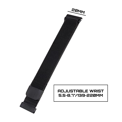 Cinturino magnetico da 20 mm compatibile con Samsung Galaxy Watch 4 (40/44 mm)/Watch 4 Classic (42/46 mm)/Watch 4 Classic LTE 46 mm Mesh Cinturino regolabile in acciaio inossidabile nero