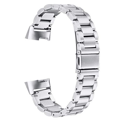 Cinturino in metallo Compatibile con Fitbit Charge 3 Swimproof fasce, in acciaio INOX da polso per orologio intelligente Compatibile con Fitbit Charge 3 in edizione speciale di uomini e donne, Silver