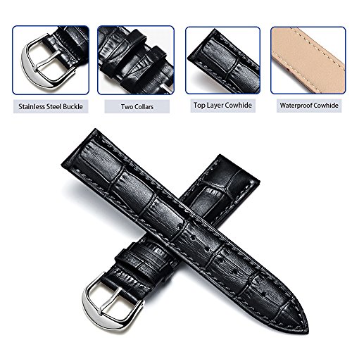 Realizzato in pelle di vitello di alta qualità, cinturino in pelle coccodrillo in rilievo con cuciture, finitura artigianale, design ergonomico, comodo da indossare. Fibbia liscia lucidata in acciaio inossidabile, non è mai fuori moda.
