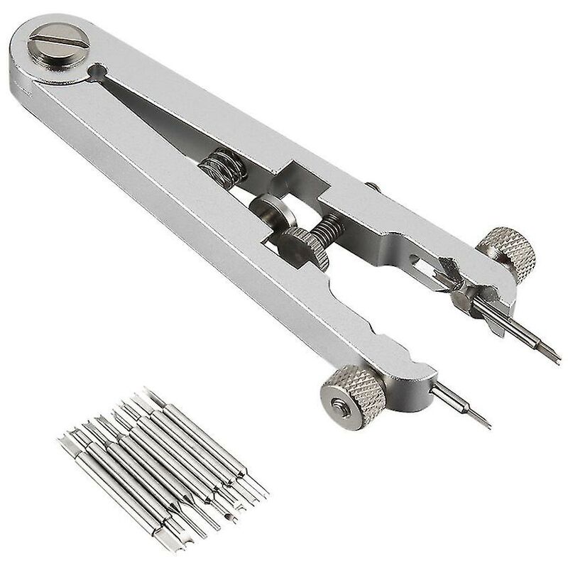 Caratteristica: Modifica facilmente l'orologio a casa o in viaggio. Strumento pratico per aiutare a regolare e riparare facilmente il cinturino dell'orologio. Acciaio inossidabile progettato con precisione per apportare modifiche al cinturino. Blocca ruotando una vite, puoi bloccare le pinze nella misura specifica che ti serve per la tua riparazione. Per far scattare i perni della barra e aiutare a installare cinturini e cinturini per orologi su una cassa dell'orologio nuova (o forse vecchia). Specifica: Colore: Come l'esposizione dell'immagine Materiale: Acciaio inossidabile + lega di alluminio + placcatura in ottone Diametro: 1,0 mm, 1,2 mm, 1,6 mm include: 1 x strumento di rimozione 8 x aghi