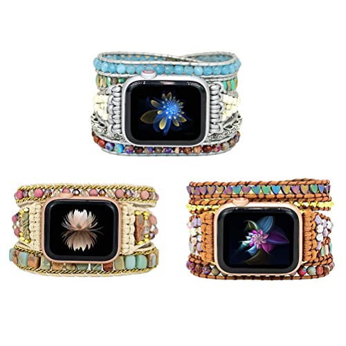 Cinturino per orologio compatibile con Apple Watch Bracciale per perline Boho Cinturino per orologio intrecciato per donna Uomo 38-41mm 42-45mm