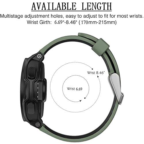 ?Funzionamento semplice? Il cinturino è adatto per passanti da 170 mm a 210 mm. Il design della perforazione più stretto rispetto al braccialetto originale. È possibile spostare la posizione del foro e della fibbia per regolare le dimensioni. Basta rimuovere la cinghia corrente e avvitare il nuovo cinturino colorato. Montare l'ago attraverso le alette dell'orologio Garmin, quindi utilizzare uno strumento per serrare le viti su entrambe le estremità.