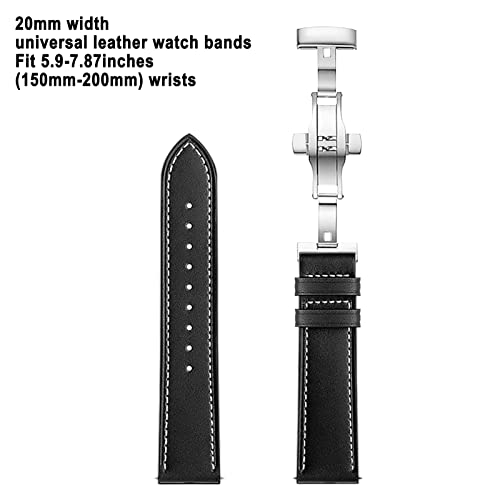 20mm Cinturino in Pelle per Samsung Galaxy Watch 5/4/Active 2 40mm 44mm/5 Pro 45mm,Cinturino di Ricambio in Pelle con Fibbia a Farfalla per Amazfit Bip/GTS/GTS 2(Nero con fibbia argentata)