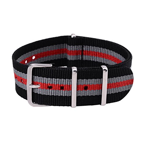 22mm Cinturino Regolabile in Tela Per Orologio Da Polso Da Ricambio Colore Nero Grigio Rosso