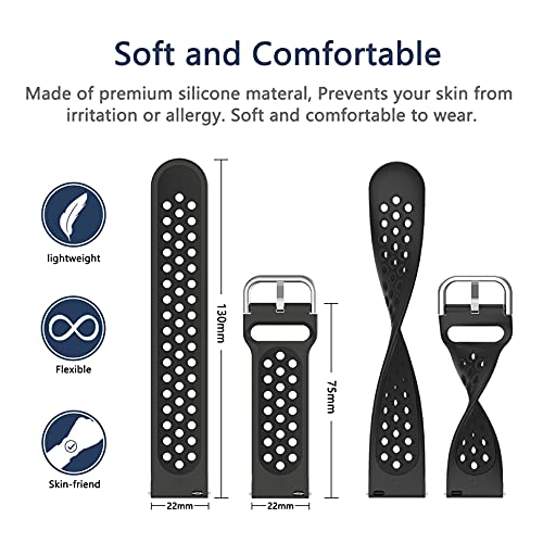 Compatibilità: 22 mm di larghezza anse cinturini di ricambio sportivi, adatti per molti orologi tradizionali o intelligenti con 22 mm di larghezza ansa standard.