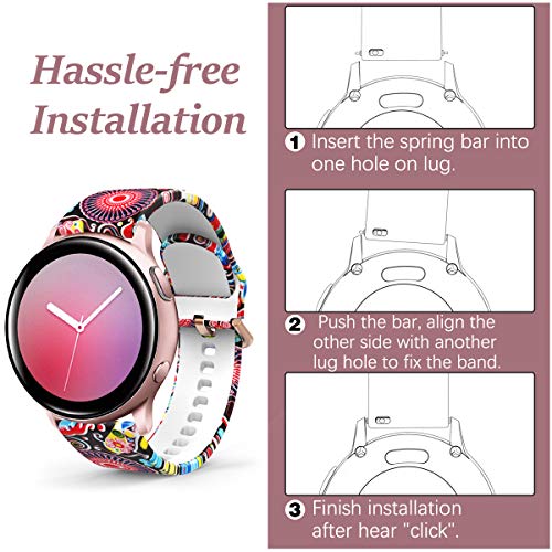 【Motivo stampato】Questo cinturino Galaxy Watch Active 2 è stampato con una varietà di simpatici motivi per aggiungere un tocco di eleganza e stile al vostro orologio Samsung. Le nuove stampe e i nuovi motivi danno vita al cinturino in puro silicone. La stampa resiste all'uso quotidiano.