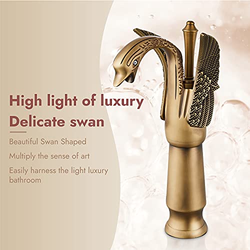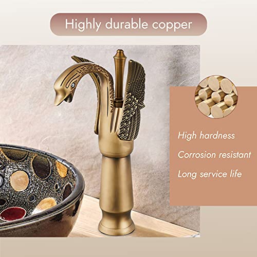 Cinwiny Rubinetto del cigno Rubinetto del lavandino del bagno in ottone antico bronzo a forma di cigno maniglia singola un foro alto lavabo rubinetto miscelatore ponte montaggio uccello rubinetto