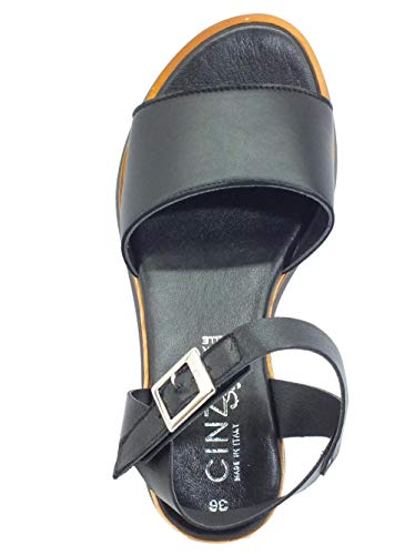 CINZIA SOFT CB75434M Nero Sandali per Donna in Pelle Zeppa Alta Effetto Legno (Taglia 36)