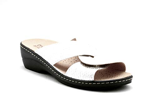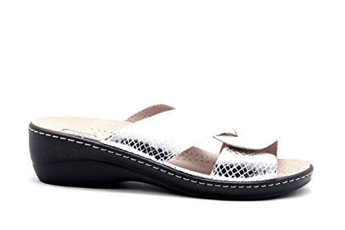 CINZIA SOFT Ciabatte in Pelle Donna IAEH63-VPY 001 Vernice+PYTON Bianco/Argento (37)