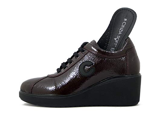 CINZIA SOFT IV11360A Scarpa Donna in Pelle Stringata con Zeppa 6 cm (Bordeaux, Numeric_35)