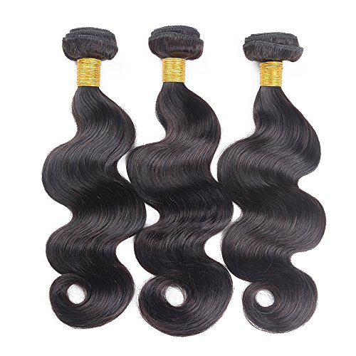 3 ciocche di capelli umani brasiliani ondulati, 10 A, con chiusura, non trattate, ondulate, colore naturale