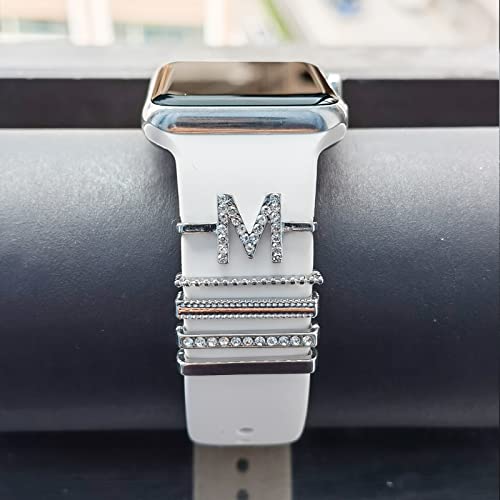 Ciondoli accessori per anelli decorativi in acciaio inossidabile compatibili con cinturini in silicone Apple Watch Ciondoli per cinturino Galaxy Watch Fit per tutti i cinturini Letter M