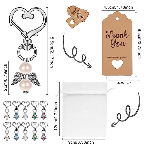 Materiale Di Alta Qualità: Il Regalo Per Gli Ospiti È Realizzato In Lega Di Zinco, Non Facile Da Graffiare E Sbiadire. Il Portachiavi Dell'Angelo Custode Ha La Forma Di Un Angelo, Una Combinazione Di Ali In Lega E Perle Finte. Cartone Kraft: 9,5 X 4,5 Cm;