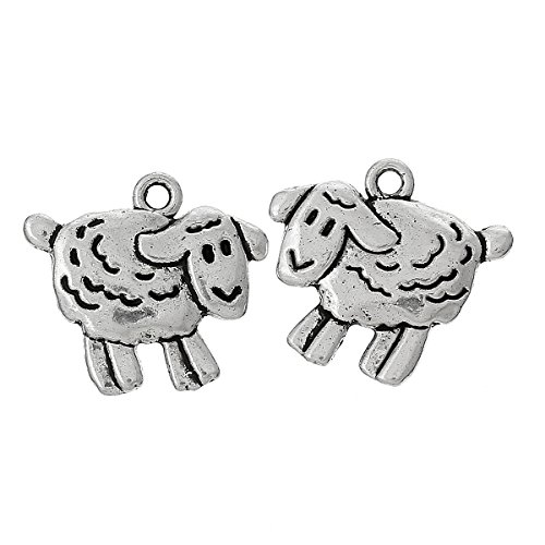 Ciondoli in argento tibetano a forma di pecora, agnello, 10 pezzi