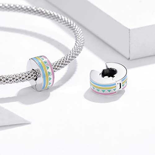 Ciondoli con clip distanziatore compatibili con bracciale Pandora,Charm in argento sterling 925nPerline con tappo smaltato colorato