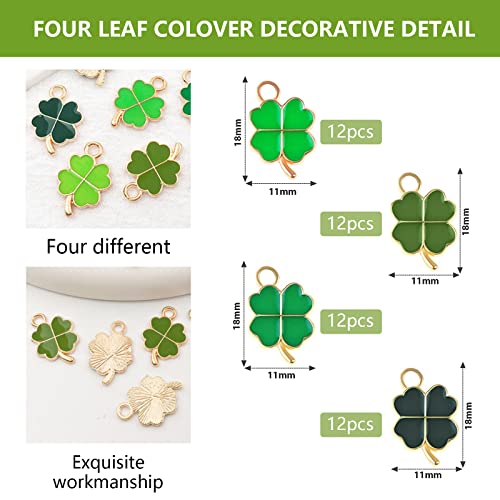 48 Ciondoli a Forma di Quadrifoglio Quadrifoglio Ciondolo Ciondoli Portafortuna in Metallo Colore Verde Forma di Quadrifoglio per Fai Te Collane Bracciali Quadrifoglio Ciondolo con Collana Corda Cera