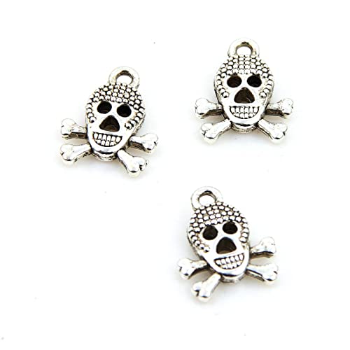 20 ciondoli a forma di teschio, 14 mm, in metallo, per collane, bracciali, fai da te