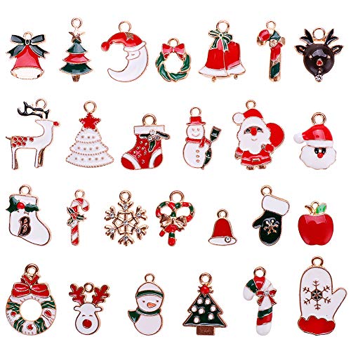 Quantità: circa 52 pezzi nella confezione, 26 tipi e 2 pezzi di molti tipi, come smalto di Natale, alberi di Babbo Natale, renne, cervi, pupazzi di neve, calze e così via.