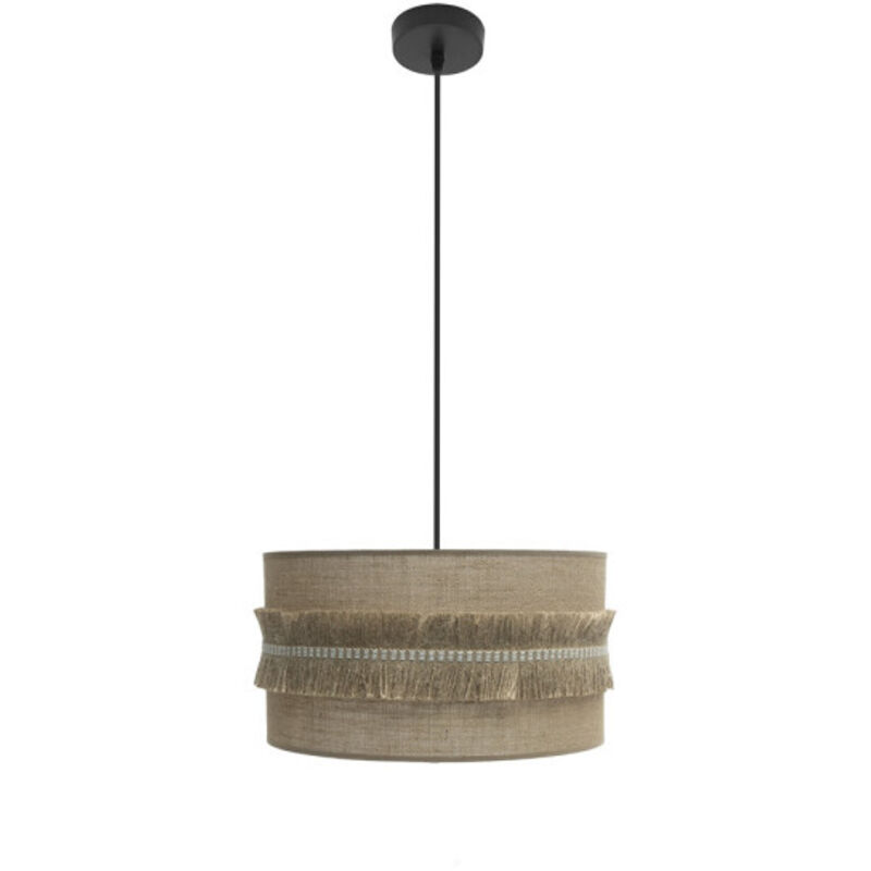 Pendente della serie KALA in colore NERO ccon paralume realizzatoin tessuto SACK. Ha una presaper E27. Lampadina non inclusa. Spicca il suo paralume cilindrico con passamaneria a doppia frangia. Stile molto originale ed elegante, ideale per arredare e illuminare camere da letto, ingressi, salotti e salotti, aggiungendo calore alla stanza che illumina, sia nelle decorazioni rustiche, classiche o vintage. Ha dimensioni regolabili in altezza di 25