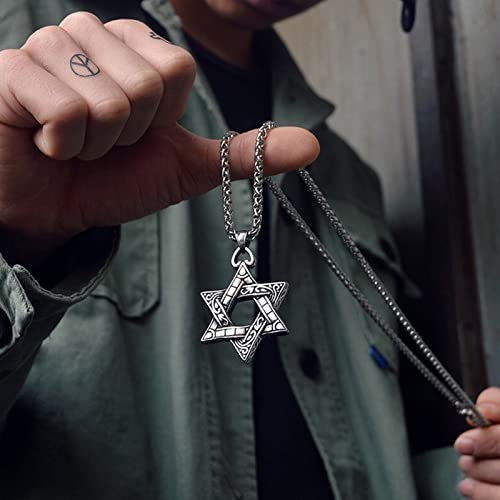 HCMA Ciondolo da Uomo in Acciaio Inossidabile Classico Vintage con Stella di David, Stella a Sei Punte, Simbolo di Moda Religiosa, Regalo di Gioielli