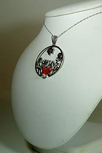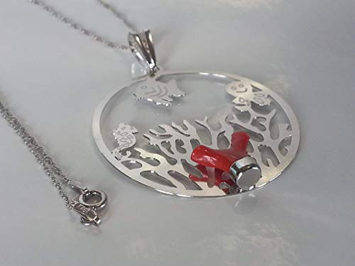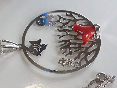 Ciondolo argento 925 rodiato Fondo Marino con rametto in corallo autentico