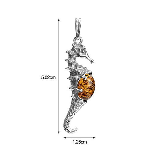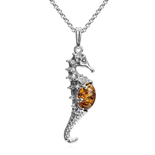Ciondolo in argento Sterling con ambra cavalluccio marino ciondolo catena 46 cm