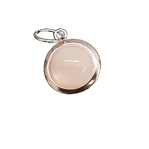 Pendente tondo in quarzo rosa cabochon da 10 mm con base, bordo e ansa in argento 925. Dimensioni totali ciondolo piccolo, ideale 12 mm + ansa