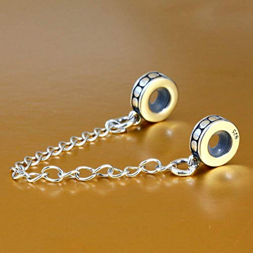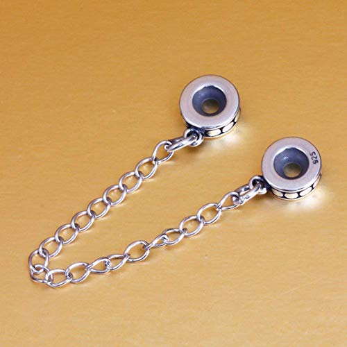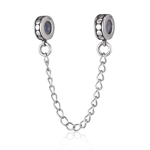 Ciondolo con catenina di sicurezza in argento 925 e fermi distanziatori a perlina in argento Sterling per braccialetto in stile europeo