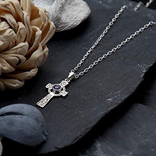 Ciondolo celtico a croce ametista Argento sterling con collana 46cm