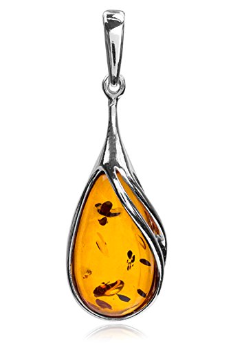 Noda - Ciondolo classico, a forma di goccia, argento sterling e ambra